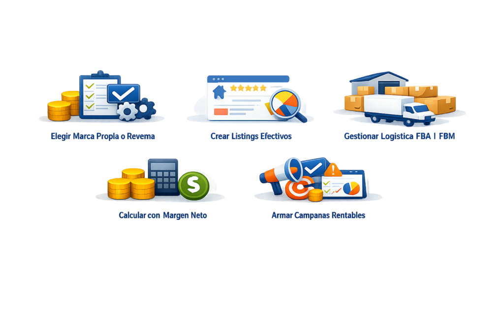 - Checklists operativos (cuenta, compra, listing, lanzamiento)